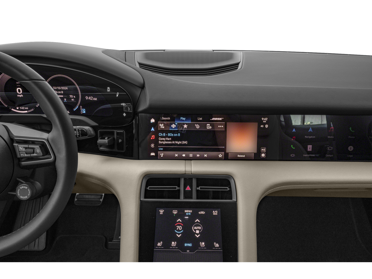 Porsche Approved Certified Pre-Owned Certified, 14-Way Comfort Seats w/Comfort Memory, Adaptive Cruise Control, Air Quality System, Fixed Panoramic Roof in Glass, Front Seat Ventilation, Head-Up Display, Performance Battery Plus, Premium Package, Soft Close Doors, Sport Chrono Package, Storage Package, Surround View w/Active Parking Support, Wheels Painted in Exterior Color, Wheels: 21" Mission E Design, 10 Speakers, 4-Wheel Disc Brakes, 8-Way Comfort Seats, ABS brakes, Adaptive suspension, Air Conditioning, Alloy wheels, Apple CarPlay & Android Auto, Artificial Leather Seat Trim, Auto High-beam Headlights, Auto-dimming door mirrors, Auto-dimming Rear-View mirror, Auto-leveling suspension, Automatic temperature control, Brake assist, Bumpers: body-color, Compass, Delay-off headlights, Driver door bin, Driver vanity mirror, Dual front impact airbags, Dual front side impact airbags, Electronic Stability Control, Emergency communication system: Emergency Call Systems - eCall and bCall, Exterior Parking Camera Rear, Four wheel independent suspension, Front anti-roll bar, Front Bucket Seats, Front Center Armrest, Front dual zone A/C, Front reading lights, Fully automatic headlights, Garage door transmitter: HomeLink, Heated door mirrors, Heated front seats, Heated steering wheel, Illuminated entry, Knee airbag, Leather steering wheel, Low tire pressure warning, Memory seat, Navigation system: Porsche Communication Management (PCM), Occupant sensing airbag, Outside temperature display, Overhead airbag, Overhead console, Panic alarm, Passenger door bin, Passenger vanity mirror, Porsche Communication Management, Power door mirrors, Power driver seat, Power passenger seat, Power steering, Power windows, Radio data system, Rain sensing wipers, Rear anti-roll bar, Rear fog lights, Rear reading lights, Rear seat center armrest, Rear side impact airbag, Rear window defroster, Remote keyless entry, Security system, Speed control, Speed-sensing steering, Split folding rear seat, Spoiler, Steering wheel mounted audio controls, Telescoping steering wheel, Tilt steering wheel, Traction control, Trip computer, Variably intermittent wipers, Wheels: 19" Taycan S Aero, 14-Way Comfort Seats w/Comfort Memory, Adaptive Cruise Control, Air Quality System, Fixed Panoramic Roof in Glass, Front Seat Ventilation, Head-Up Display, Performance Battery Plus, Premium Package, Soft Close Doors, Sport Chrono Package, Storage Package, Surround View w/Active Parking Support, Wheels Painted in Exterior Color, Wheels: 21" Mission E Design.
